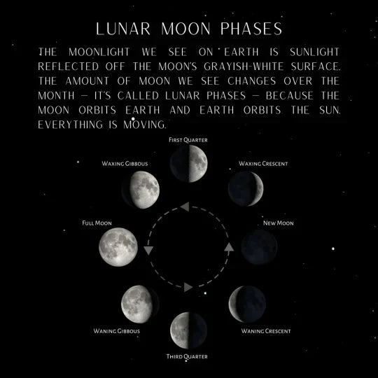 🎁 As the moon, Earth, and the sun go through their orbital dance, the part of the moon that's illuminated by sunlight moves in and out of our view, creating a predictable series of lunar phases.